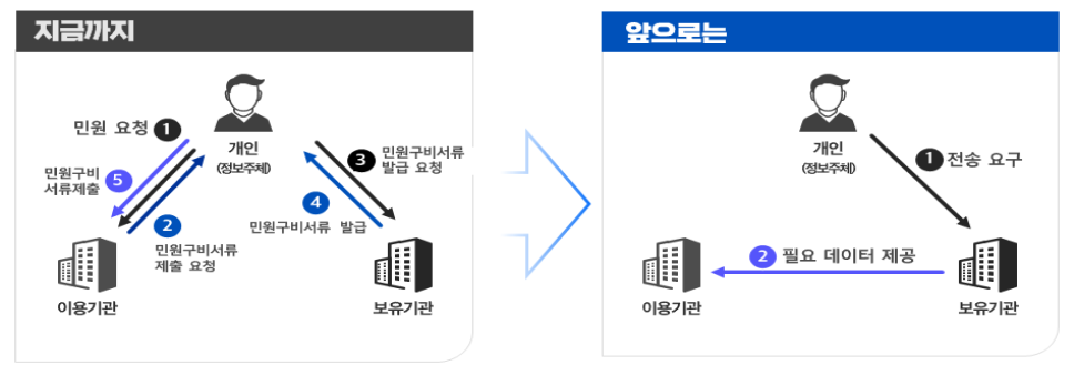 본인이 손쉽게 나의 행정정보(Mydata)를 활용해 준비서류와 대기시간이 없이도 필요한 공공서비스를 바로바로 신청할 수 있도록 공공 마이데이터 서비스가 확대된다.