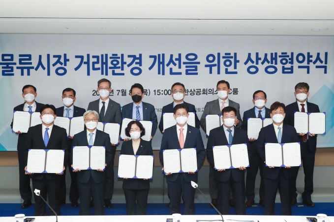 국토교통부(이하 국토부)와 공정거래위원회(이하 공정위)는 7월 8일 화주기업과 물류기업을 대표해 5대 대기업 집단(삼성·현대자동차·LG·롯데·CJ)와 물류시장 거래환경 개선을 위한 상생 협약을 맺었다.