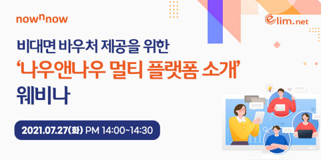 엘림넷은 오는 7월 27일 오후 2시 굿모임에서 ‘비대면 바우처 서비스 설명· 나우앤나우 플랫폼 소개’라는 주제의 웨비나를 진행한다고 밝혔다.