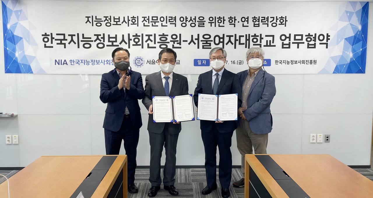 한국지능정보사회진흥원(이하 NIA)과 서울여자대학교 대학원(이하 서울여대)은 7월 16일 NIA 서울사무소에서 지능정보사회에 필요한 여성 전문인력 양성을 위한 업무협약(MOU)을 체결했다고 밝혔다.
