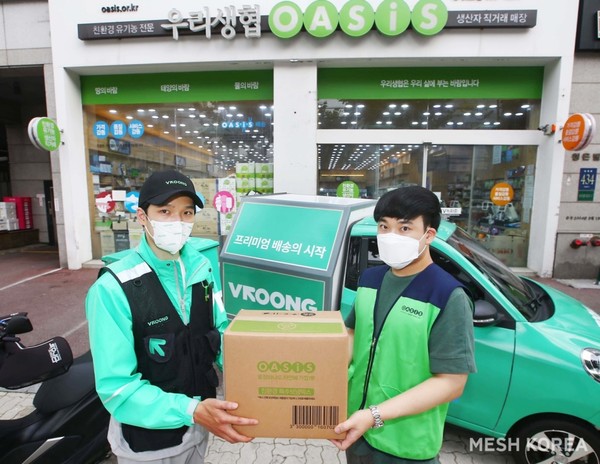 [테크월드뉴스=방제일 기자] 유통물류 브랜드 ‘부릉’을 운영하는 메쉬코리아와 신선식품 새벽배송 전문기업 오아시스마켓이 퀵커머스 서비스 플랫폼 론칭과 운영을 위한 합작법인 ‘브이’를 설립한다.