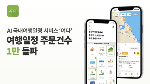 [테크월드뉴스=방제일 기자] AI 여행일정 서비스 ‘여다’가 출시된 후 제작된 국내여행 일정이 누적 1만 건을 돌파했다.
