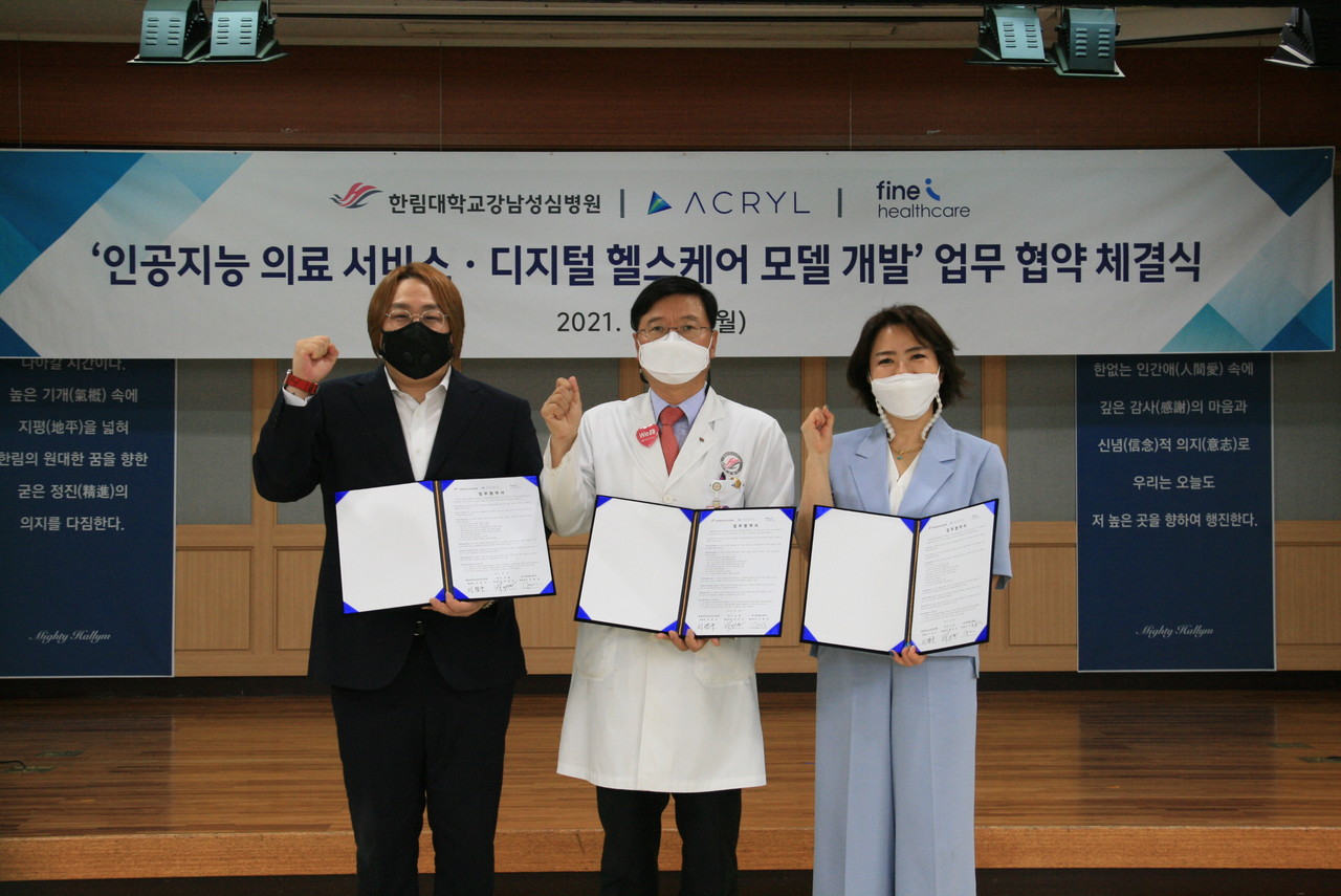 [테크월드뉴스=김경한 기자] 아크릴은 한림대강남성심병원 및 파인헬스케어와 아크릴의 통합 인공지능(AI) 플랫폼 ‘조나단(Jonathan)’을 활용한 인공지능 의료 서비스 공동 개발을 위한 MOU(업무협약)을 19일 체결했다고 밝혔다.