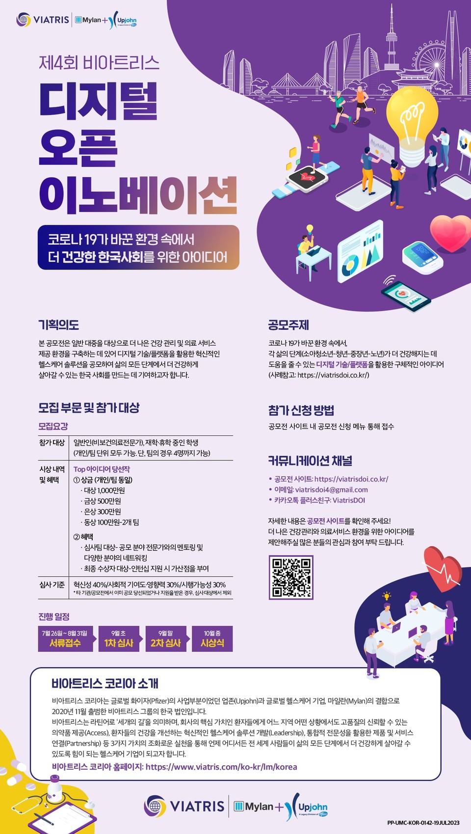 특히 이번 공모전은 기존 ‘화이자 에센셜 헬스(PEH) 디지털 오픈 이노베이션’ 공모전을 계승해 비아트리스의 이름으로 새롭게 진행된다. 비아트리스 코리아는 글로벌 화이자의 사업 부문이었던 업존 글로벌 헬스케어 기업인 마일란의 결합으로 2020년 11월 출범한 비아트리스 그룹의 한국 법인이다.