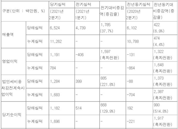 당기순이익은 11억8200만원을 기록해 전년 동기에 비해 514.8% 급증했다.