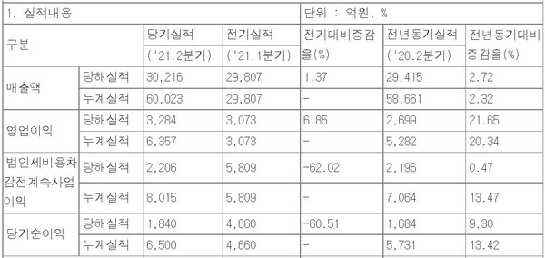 New ICT 사업의 분기별 매출은 전년 동기 대비 5분기 연속 두 자릿수 성장했다. 구체적으로는 ▲2Q20 13.4% ▲3Q20 18.9% ▲4Q20 21.2% ▲1Q21 16.7% ▲2Q21 10.1% 등이다.