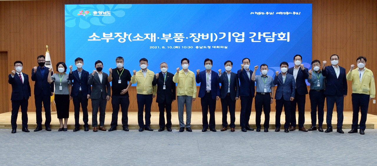 도는 8월 10일 도청 대회의실에서 양승조 지사, 도내 소부장 기업 대표 또는 임원 14명이 참석한 가운데 ‘소부장 기업 간담회’를 개최했다.