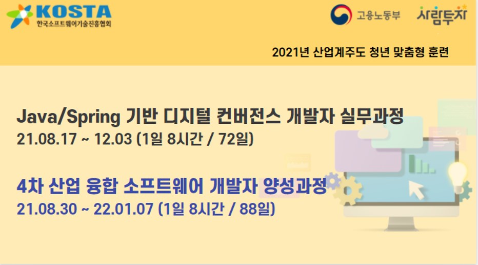 취업준비생 교육과정은 Java/Spring 기반 디지털 컨버전스 개발자 실무과정, 4차 산업 융합 소프트웨어 개발자 양성과정 2개 과정이다.
