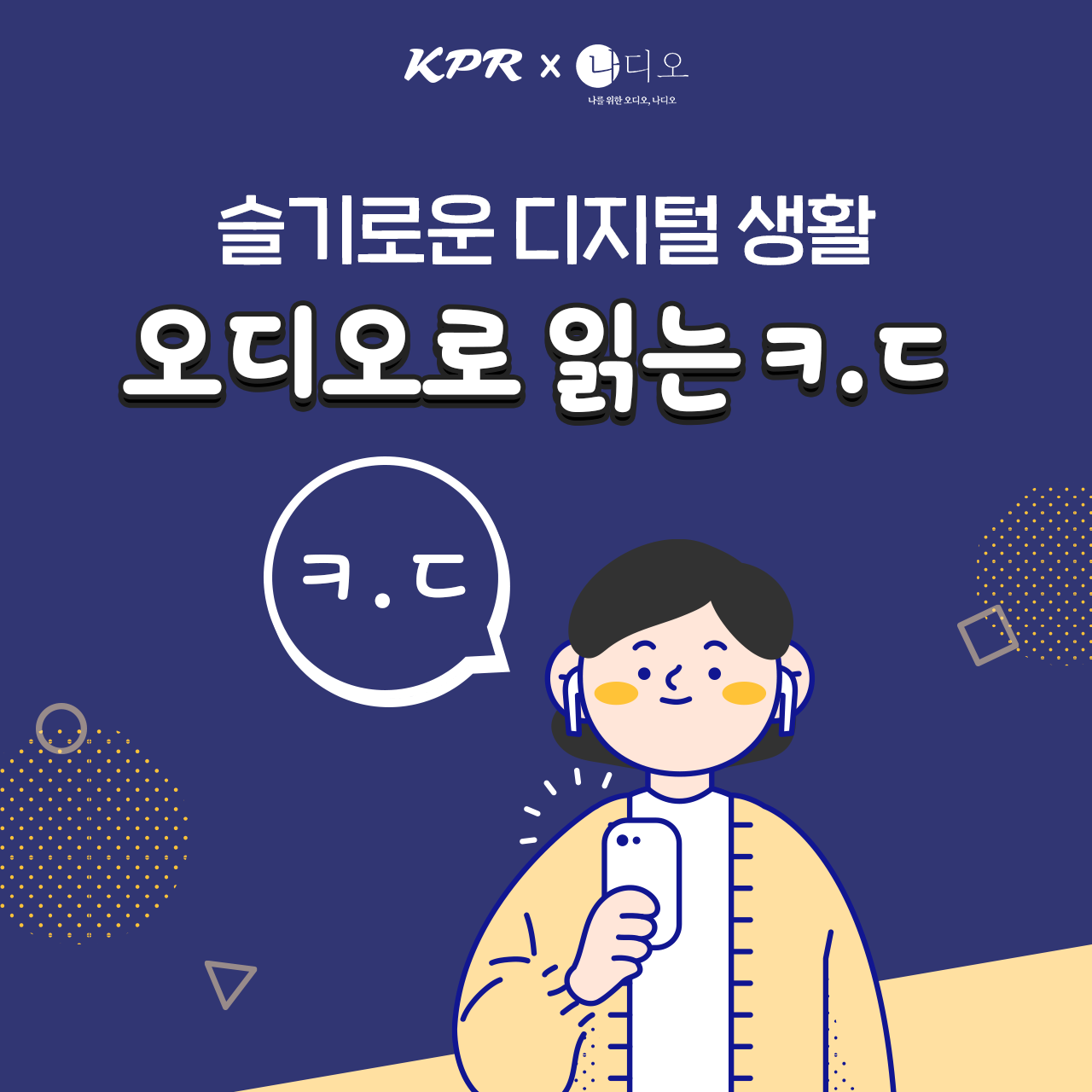 KPR은 슬기로운 디지털 생활-오디오로 읽는 <ㅋ.ㄷ> 채널을 통해 매주 PR, 광고, 마케팅 분야에 관심이 있는 독자들에게 업계 주요 이슈와 트렌드를 짚어줄 예정이다. 텍스트가 아닌 오디오 콘텐츠로 제공되기에 독자들은 바쁜 일상에서도 언제 어디서나 자투리 시간을 활용해 유용한 정보를 접할 수 있다.