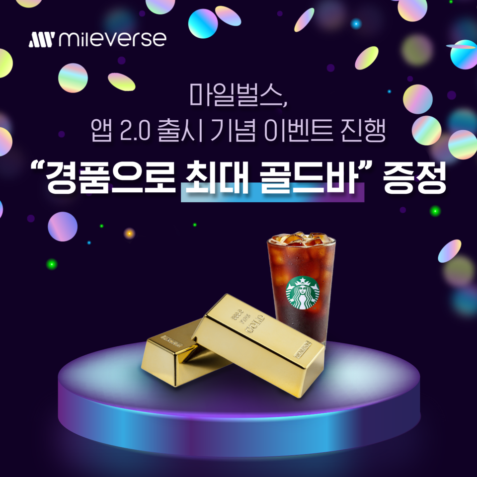 이를 기념해 1주차에는 이벤트 기간동안 마일벌스 앱에 가입하는 신규회원에게 스타벅스 상품권을 증정하며, SNS, 블로그 등에 마일벌스 소개글을 포스팅하는 회원을 대상으로 최대 150만 원 상당의 골드바를 포함해 총 3000만 원 상당의 경품을 증정하는 이벤트도 함께 진행된다.