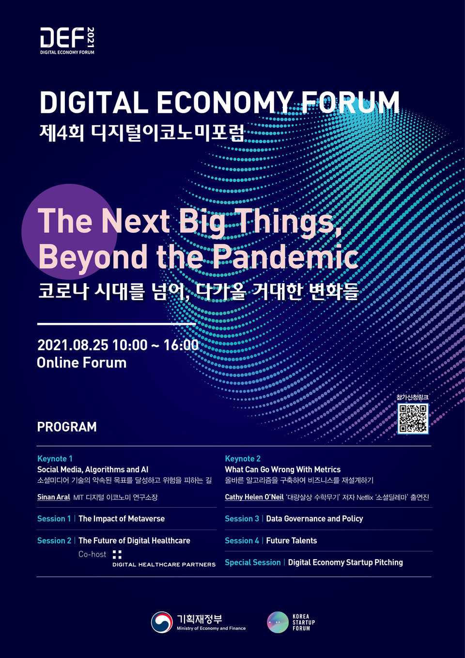 [테크월드뉴스=조명의 기자] 기획재정부(이하 기재부)는 8월 25일 기획재정부 주최, 코리아스타트업포럼 주관으로 ‘2021 디지털이코노미포럼’을 개최한다고 밝혔다.