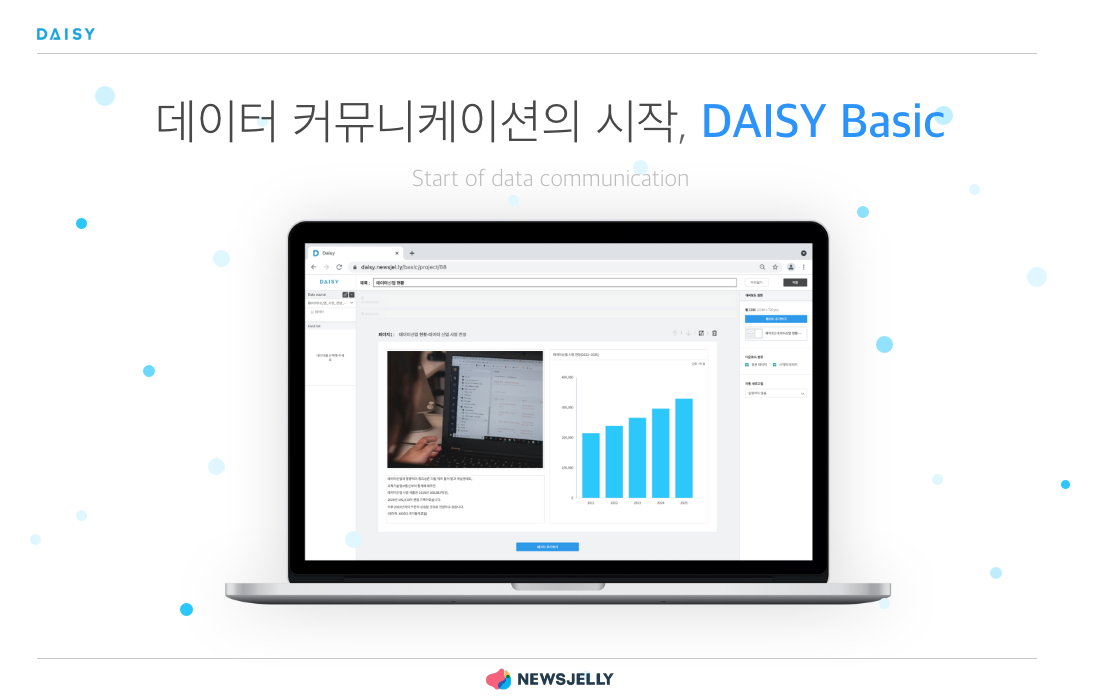 [테크월드뉴스=조명의 기자] 뉴스젤리가 웹 기반 데이터 시각화 솔루션 ‘데이지(DAISY)’의 업데이트를 진행, ‘데이지 베이직(DAISY Basic)’ 버전을 출시했다.