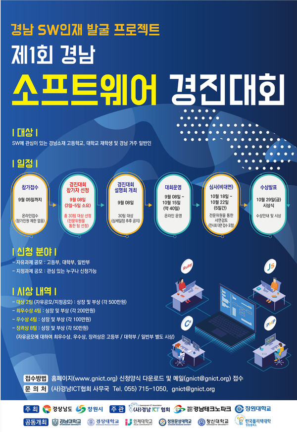 참가신청은 9월 5일까지 경남ICT협회 누리집에 게시된 신청양식을 작성해 전자우편으로 제출하면 된다.