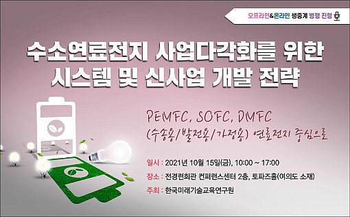 [테크월드뉴스=서유덕 기자] 한국미래기술교육연구원(KECFT)은 오는 10월 15일 서울 여의도 전경련회관 토파즈홀에서 ‘수소연료전지 사업 다각화를 위한 시스템 및 신사업 개발 전략 - PEMFC, SOFC, DMFC (수송용/발전용/가정용) 연료전지’ 세미나를 온·오프라인 병행 개최한다고 8일 밝혔다.