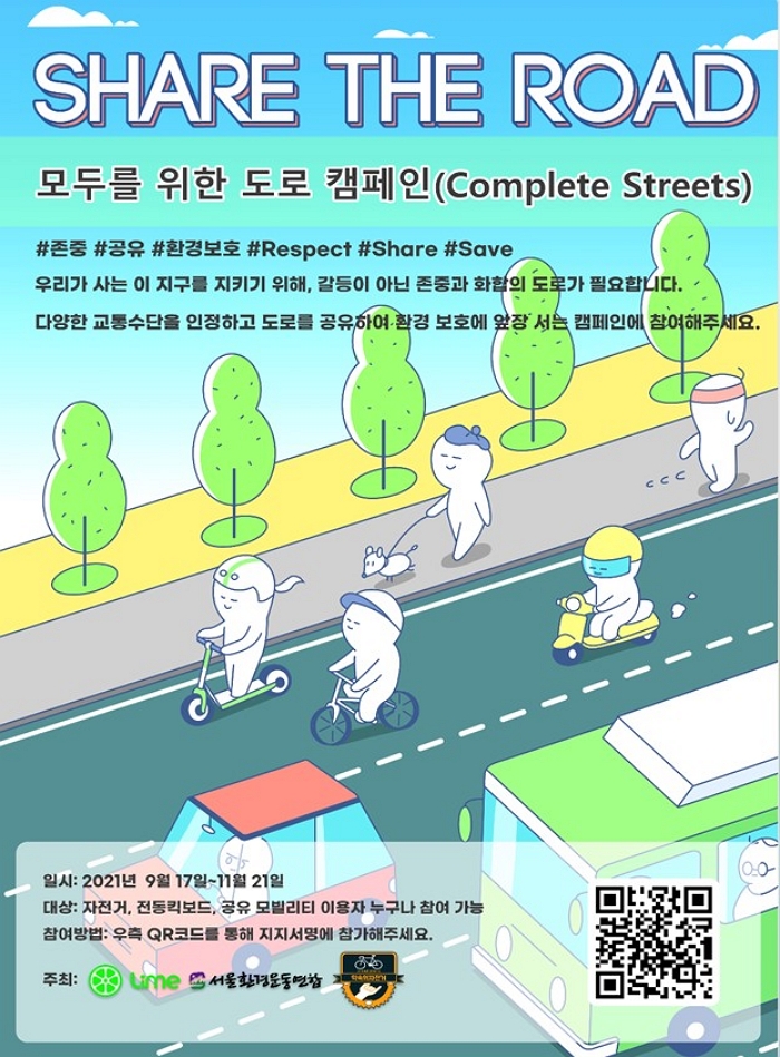 신우용 서울환경연합 사무처장은 “이번 캠페인은 자전거 등 다양한 대체교통수단을 안전하게 이용하고 싶은 사람들의 의지와 열정을 모아내는 과정”이라며 “기후위기 시대 수송부문 온실가스 감축을 위해 모두를 위한 도로가 조성돼야 한다”고 말했다.