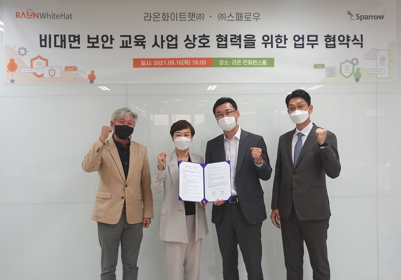 [테크월드뉴스=김경한 기자] 라온화이트햇이 소프트웨어 개발보안 전문회사 스패로우와 소프트웨어 보안 관련 교육 콘텐츠 및 솔루션 개발을 통한 비대면 보안 교육 사업 강화에 나선다.