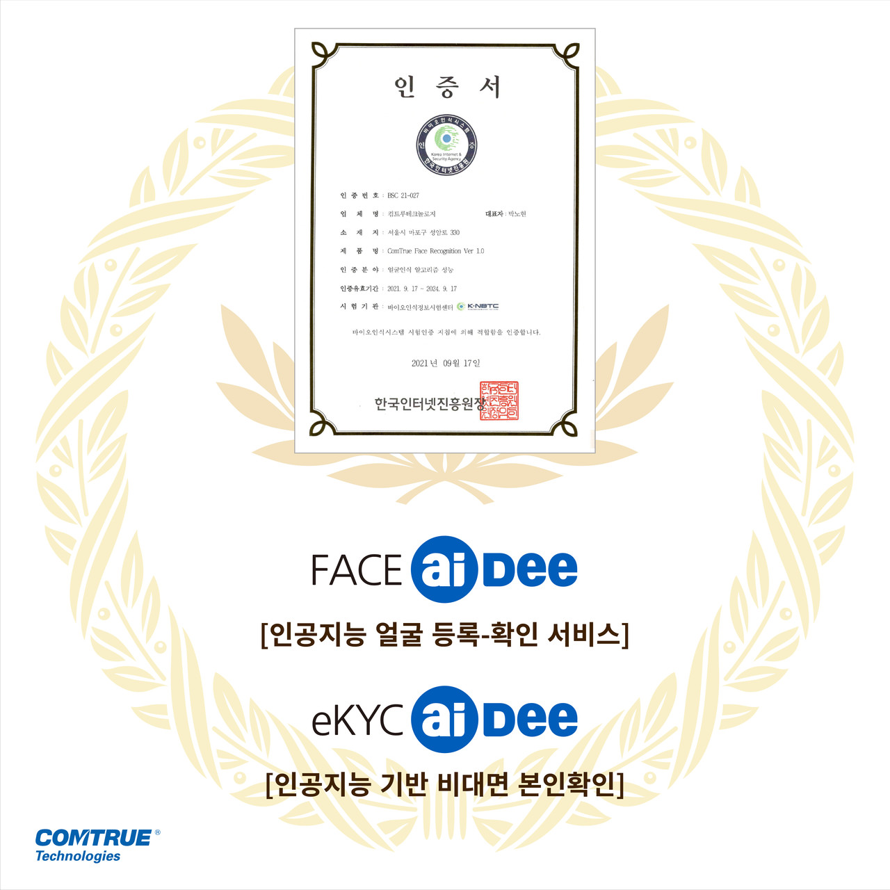 이번 인증을 획득한 얼굴인식 알고리즘 성능이 포함된 컴트루테크놀로지의 인공지능 얼굴인식 기술은 자체 개발 신경망이 적용됐으며 얼굴 고유의 특성을 정확히 추출할 수 있도록 개발된 점이 특징이다. 인증받은 얼굴인식 기술은 컴트루테크놀로지의 ‘FACE aiDee(얼굴 등록 및 확인)’, ‘eKYC aiDee(비대면 본인 인증)’ 서비스를 통해 상용화돼 있다. 또한 서비스 도입을 원하는 업체가 희망하는 구축 방식에 따라 다양한 방식으로 도입할 수 있다.
