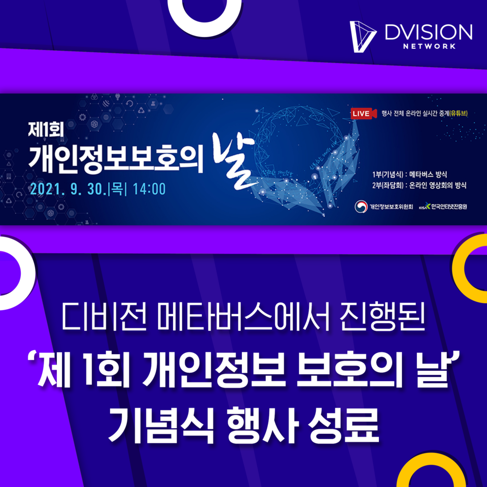 인터넷에 친숙한 MZ 세대와의 소통을 목적으로 개인정보 보호의 중요성을 알리고 정보 보호 활동을 장려하기 위해 디비전 메타버스에서 색다르게 진행됐다. 행사는 그간의 성과와 발전 방향을 논의하고 유공자 포상을 통한 다양한 개인 정보 보호의 활동 장려·활성화 방안을 모색하는 자리로 마련됐다.
