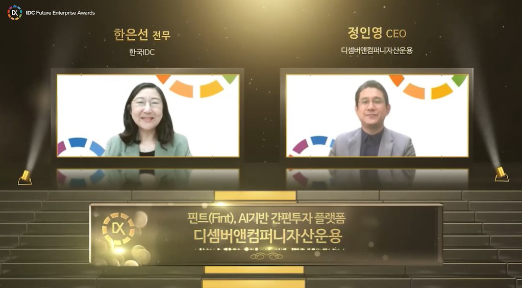 [테크월드뉴스=조명의 기자] 디셈버앤컴퍼니자산운용은 세계적인 IT 시장분석·컨설팅 기관인 IDC가 주관한 ‘IDC 퓨처엔터프라이즈 어워드 2021’에서 ‘미래의 인텔리전스 부문’ 올해의 한국 수상 기업으로 선정됐다고 밝혔다.