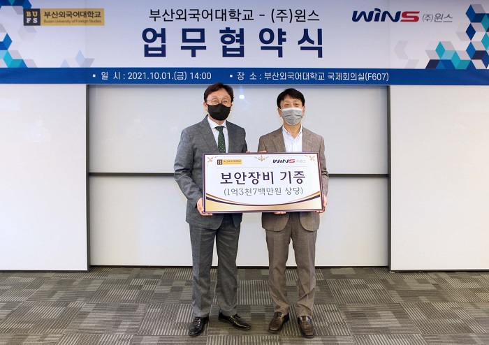 윈스는 지난 10월 7일 부산외대 국제 회의실에서 윈스 김대연 대표, 부산외대 김홍구 총장 등 관계자들이 참석한 가운데 정보보안 인재양성을 위한 산학협력·장비기증식을 진행했다고 밝혔다.