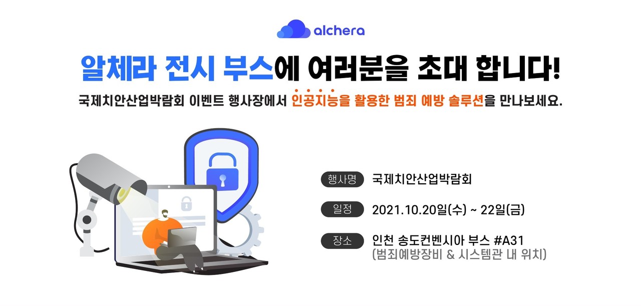 [테크월드뉴스=조명의 기자] 알체라가 오는 20일부터 22일까지 인천 송도컨벤시아에서 경찰청과 인천시가 주최하는 ‘2021 국제치안산업박람회’에 참가해 AI 관제 솔루션 ‘에어스카우트(AIIR Scout)’를 CCTV에 적용한 피해자 신변보호 프로그램을 선보인다고 밝혔다.