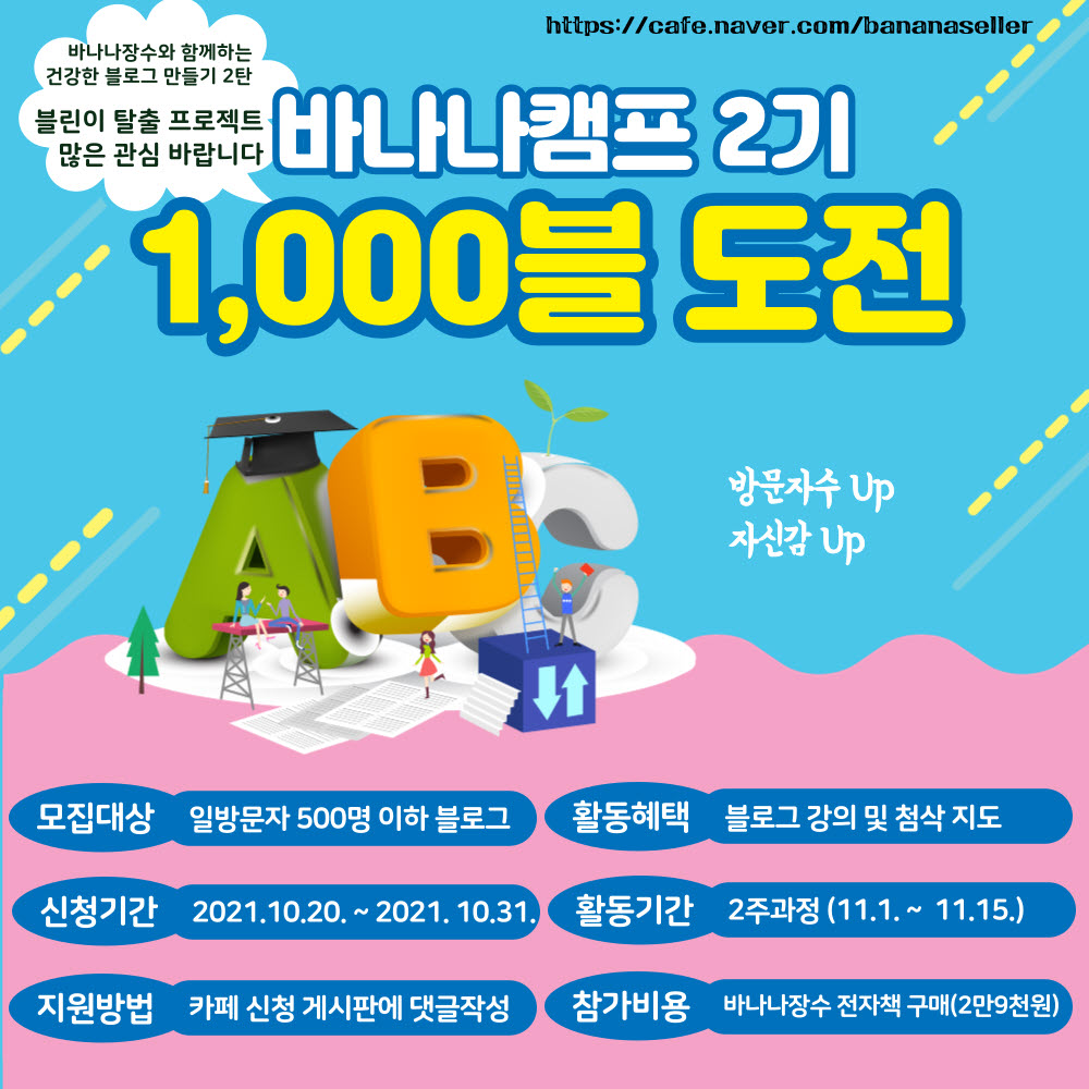 많은 추가 캠프 개설 요청을 받고 있는 네이버 바나나카페에서는 바나나캠프 2기를 희망하는 사람들을 대상으로 11월 1일부터 시작하는 2기 참가자를 새롭게 모집하고 있다.