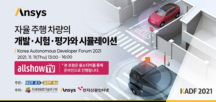 KADF 2021은 경기도가 주관하고, 융기원 경기도자율주행센터와 앤시스코리아가 공동으로 주최하는 행사로, 11월 11일 오후 1시부터 4시까지 약 3시간 동안 온라인으로 진행된다.