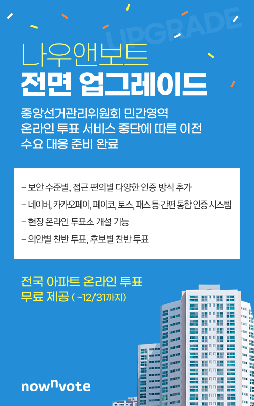 이번 나우앤보트 업그레이드를 통해서 이용자들은 더욱 강화된 본인인증 시스템·현장투표 기능을 사용하게 돼 보다 안전하고 편리한 온라인 투표를 경험할 수 있게 됐다.
