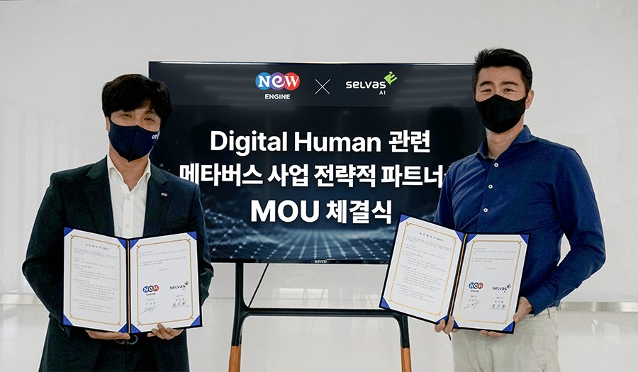셀바스 AI는 콘텐츠미디어그룹 NEW의 VFX사업 계열사 엔진비주얼웨이브와 디지털 휴먼 관련 메타버스 사업을 위한 업무협약(MOU)을 체결했다고 밝혔다.