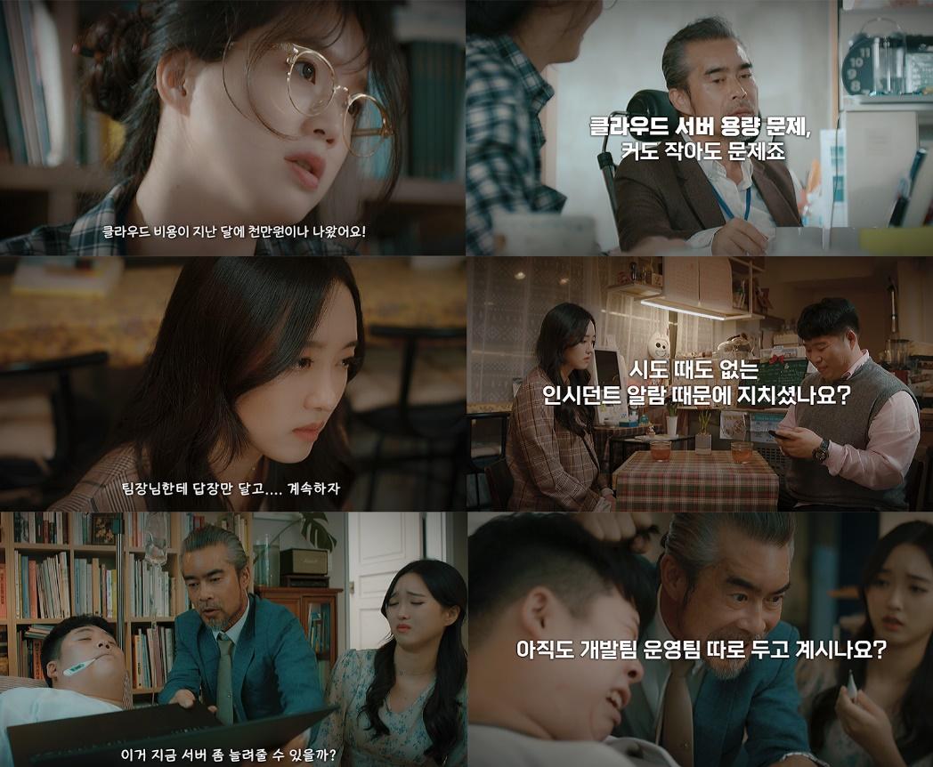 두번째 영상은 멀티 클라우드 환경의 알림에 효과적으로 대응할 수 있는 국내 최초 SaaS 기반의 인시던트 관리 플랫폼 ‘얼럿나우(AlertNow)’를 소개한다. 연인과 이별하는 중 회사로부터 빗발치는 서비스 장애 관련 휴대폰 알림과 메시지로 인해 대화가 잘 이어지지 않는 상황을 통해 알람·알림 관리가 필요함을 코믹하게 풀어내고 있다.
