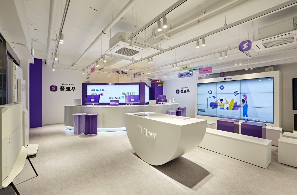 플로우팀은 딱딱한 SW 이미지를 탈피하기 위해 ‘Dreaming workplace(꿈꾸는 업무 공간)’이라는 콘셉트로 실제 일하고 싶은 미래형 사무실처럼 인테리어를 연출해 자유로운 환경에서 디지털 협업툴 경험을 제공하고 있다. 또한 방문객 누구나 협업툴 게임을 통해 플로우 굿즈를 선물로 받을 수 있다. 딱딱한 IT 기기에 재미를 불어 넣어 방문객들이 보다 친근하게 느낄 수 있도록 한 셈이다.