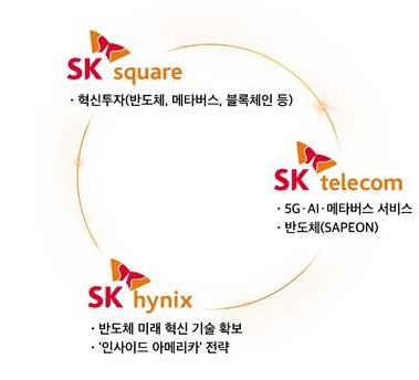 SK ICT 3사는 반도체와 통신, 인공지능 등 여러 ICT 기술을 융합한 영역에서 독보적인 경쟁력을 갖춘 기업이 드문 현재 세계 시장을 무대로 ▲SK스퀘어의 혁신투자 ▲SKT의 5G·AI 기술 ▲SK하이닉스의 반도체 기술 기반 공동 사업을 추진할 방침이다. 올해 1월부터 박정호 SK스퀘어 부회장의 주도하에 유영상 SK텔레콤 사장, 이석희 SK하이닉스 사장이 참여하는 의사결정기구 ‘3사 시너지협의체’에서 3사는 국내외 반도체와 ICT 분야 R&D 협력과 공동투자를 논의할 방침이다.