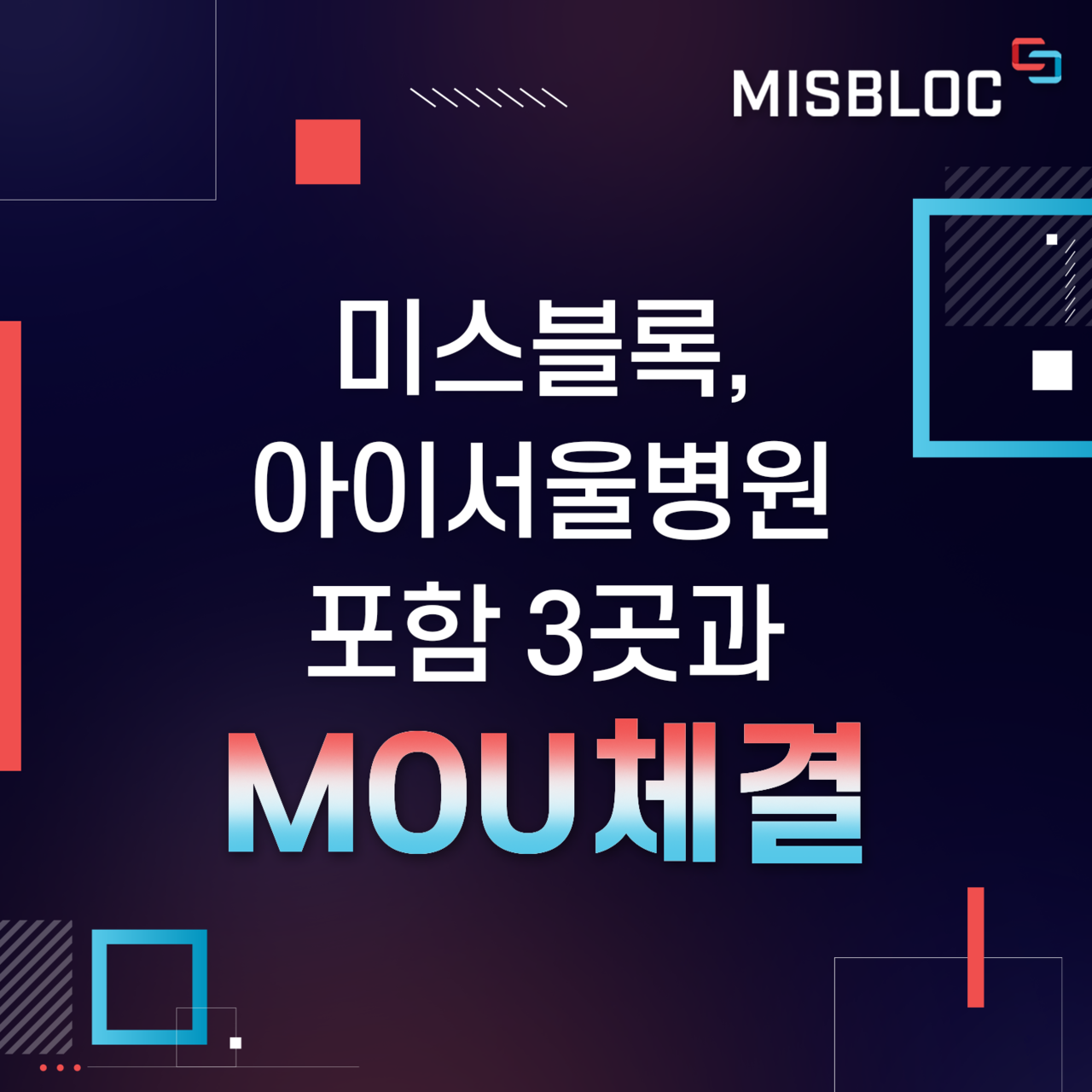 [테크월드뉴스=조명의 기자] 미스블록이 아이서울병원 포함 3곳의 병·의원과 MOU를 체결했다고 밝혔다.