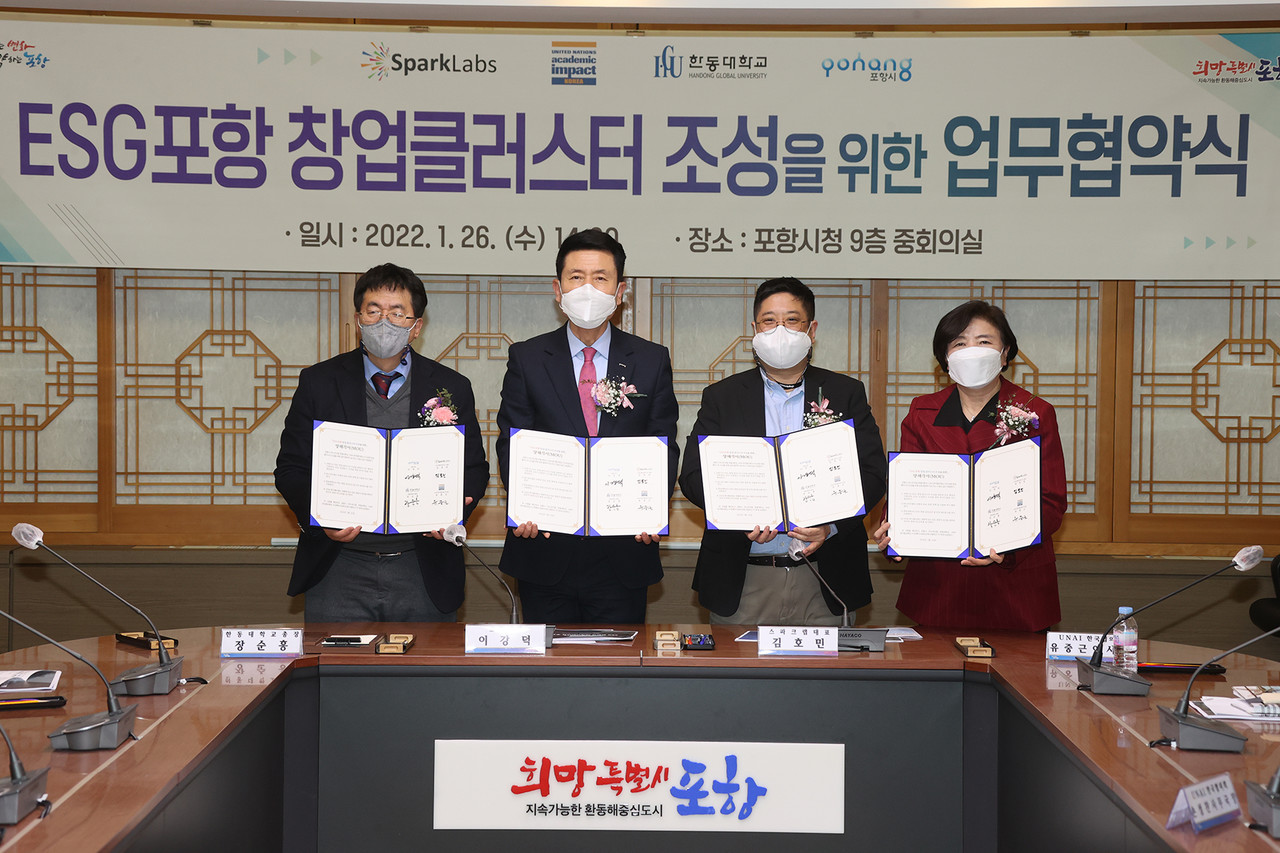 이강덕 포항시장은 “ESG 가치 실현은 더 이상 미룰 수 없는 우리 세대의 의무인 만큼 ESG 창업 클러스터 조성을 위해 대학, 연구소, 지역을 사랑하는 기업과 글로벌 투자사 간의 네트워크 형성 등으로 지속 가능한 스타트업 도시, 더 큰 포항을 완성해 전 세계 청년 인재들과 멘토·투자가가 포항에 정착할 수 있도록 철저한 준비를 하겠다”라고 밝혔다.
