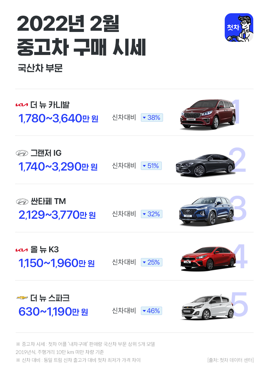 [테크월드뉴스=조명의 기자] 모바일 중고차 플랫폼 첫차가 2022년 2월 중고차 시세 전망을 발표했다.