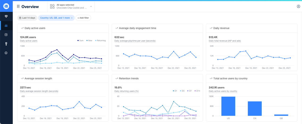 한편, 현재 베타 버전으로 제공되고 있는 아이언소스의 앱 애널리틱스는 일부 아이언소스 파트너사에 제공되고 있으며, 2022년 1분기 말까지 모든 아이언소스 레벨플레이(LevelPlay) 파트너들이 즉시 활용할 수 있도록 서비스가 확대될 예정이다.
