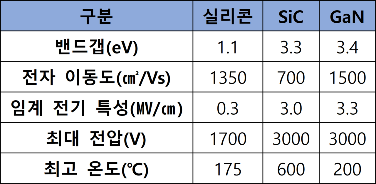 질화갈륨(GaN)과 탄화규소(SiC) 같은 화합물 기반 반도체는 실리콘 반도체보다 띠틈(밴드갭)이 넓어 ‘와이드 밴드갭 반도체’라고 부른다.