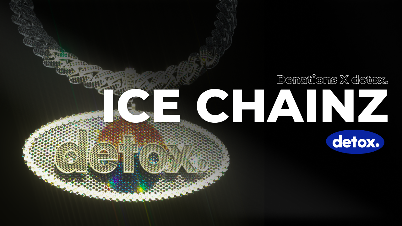 Ice Chainz by detox는 현대인의 물질주의 성향을 긍정적으로 해석해 만든 컬렉션이다. 최근에는 코로나로 인해 물질적 소비와 소유가 제한되고 있지만 실제 세계가 아닌 가상 세계, 즉 메타버스 공간 내의 소유를 통해 물질적 만족감을 충족할 수 있다. 이는 곧 NFT를 통해 참여자들이 자신의 물질적 욕구를 마음껏 해소할 수 있다는 것을 의미한다. 물질주의가 강조되는 힙합문화 속 과장된 장신구에 이런 현상을 비유해 창작됐다.