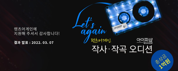 아이피샵이 주관하고 새라온E&T가 주최하는 렛츠어게인 모집기간은 1월 17일부터 2월 16일까지이며, 최종 발표는 3월 7일이다.