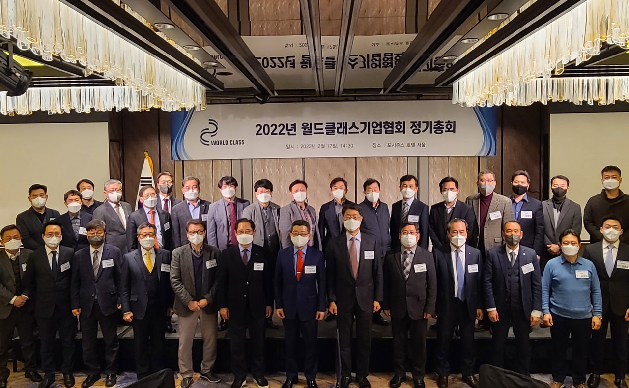 [테크월드뉴스=조명의 기자] 월드클래스기업협회은 2월 17일 서울 종로구 포시즌스 호텔에서 2022년도 사업계획 확정을 위한 정기총회를 개최하고, 반도체·디스플레이 소재 국내 1위 기업 동진쎄미켐의 이준혁 대표가 신임 협회장으로 선임됐다.