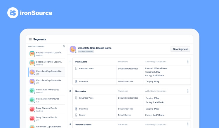 [테크월드뉴스=조명의 기자] 아이언소스는 자사 미디에이션 솔루션 ‘레벨플레이(LevelPlay)’에서 다이나믹 세그먼트를 지원한다고 발표했다.