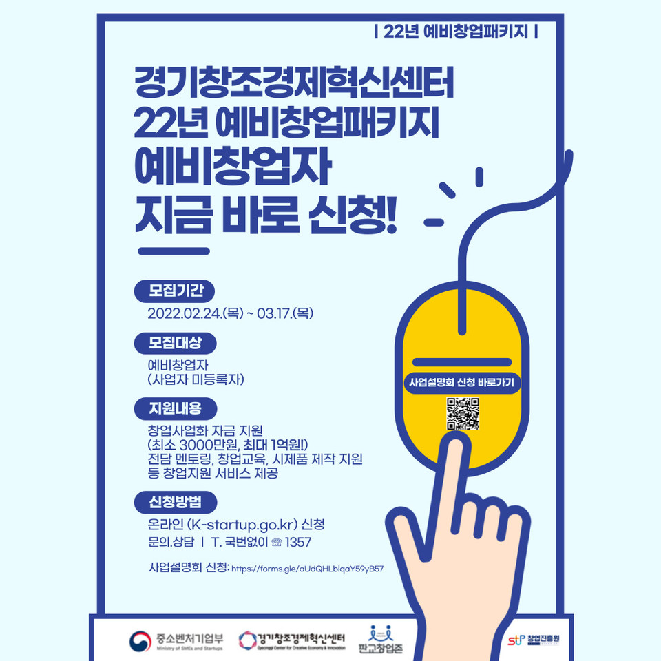 [테크월드뉴스=조명의 기자] 경기창조경제혁신센터(이하 경기혁신센터)가 오는 3월 17일까지 2022 예비창업패키지 지원사업 참여자를 모집한다고 밝혔다.
