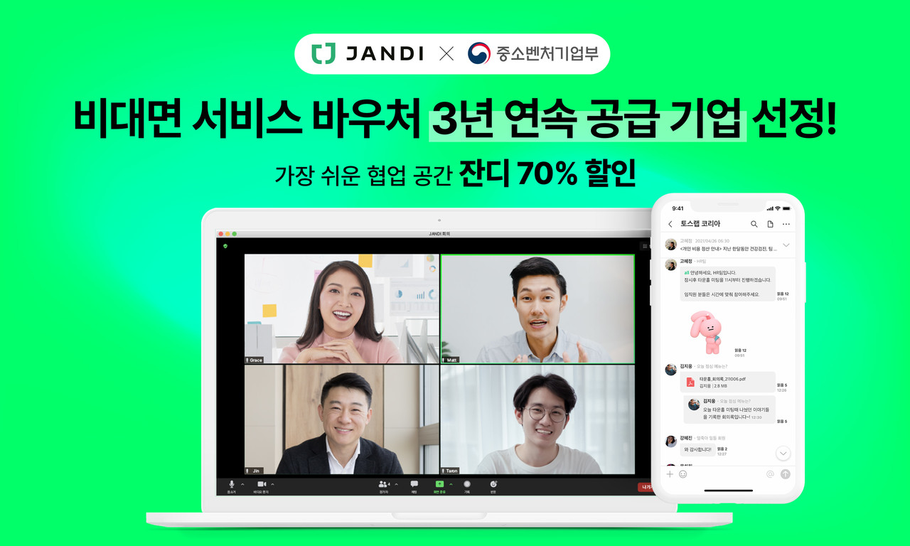 잔디는 메신저 기반의 업무용 협업툴로 누구나 쉽게 사용이 가능하고 PC, 모바일, 태블릿을 모두 지원해 비대면 근무 환경에서도 원활한 협업을 지원한다. 수요 기업은 잔디의 실시간 메신저, 주제별 대화방, 화상회의, 파일 무기한 저장, 외부 서비스 연동 등의 이용료를 70% 할인된 금액으로 이용할 수 있다.
