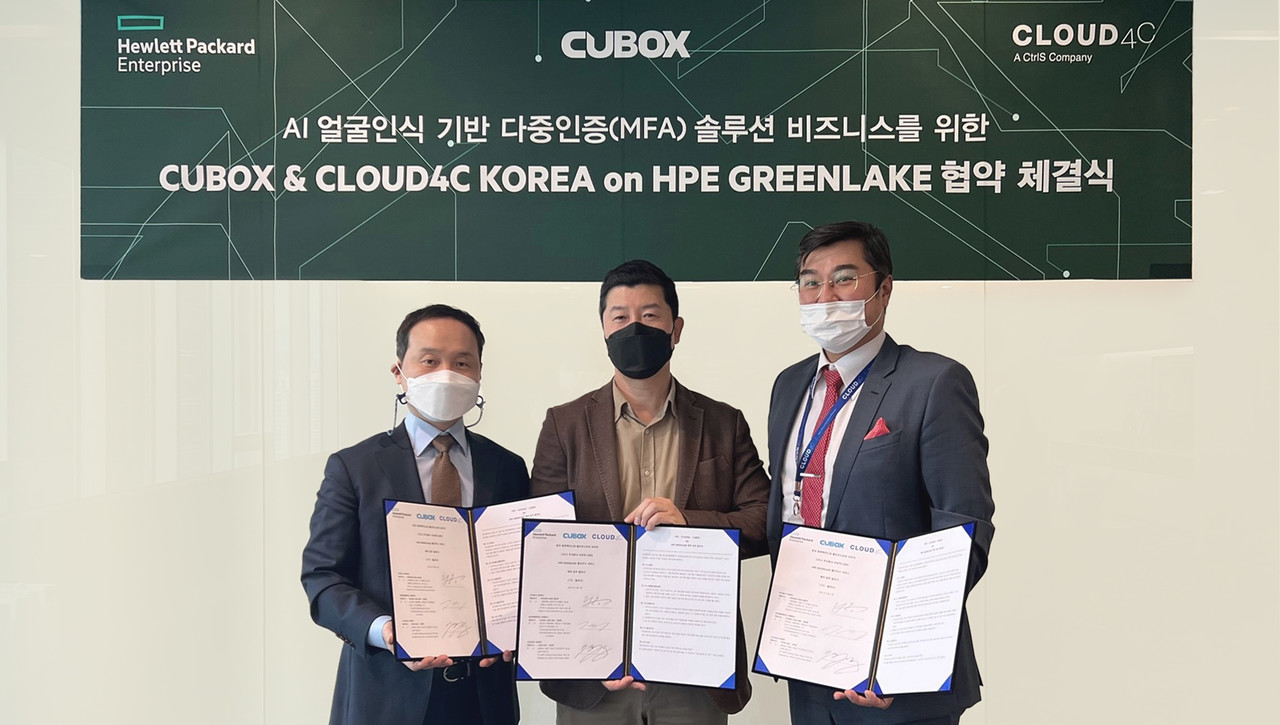 [테크월드뉴스=조명의 기자] 씨유박스가 클라우드 기반의 AI 얼굴인식 다중인증 솔루션 비즈니스 활성화를 위해 클라우드포씨와 HPE GreenLake 관리서비스 계약을 체결했다.