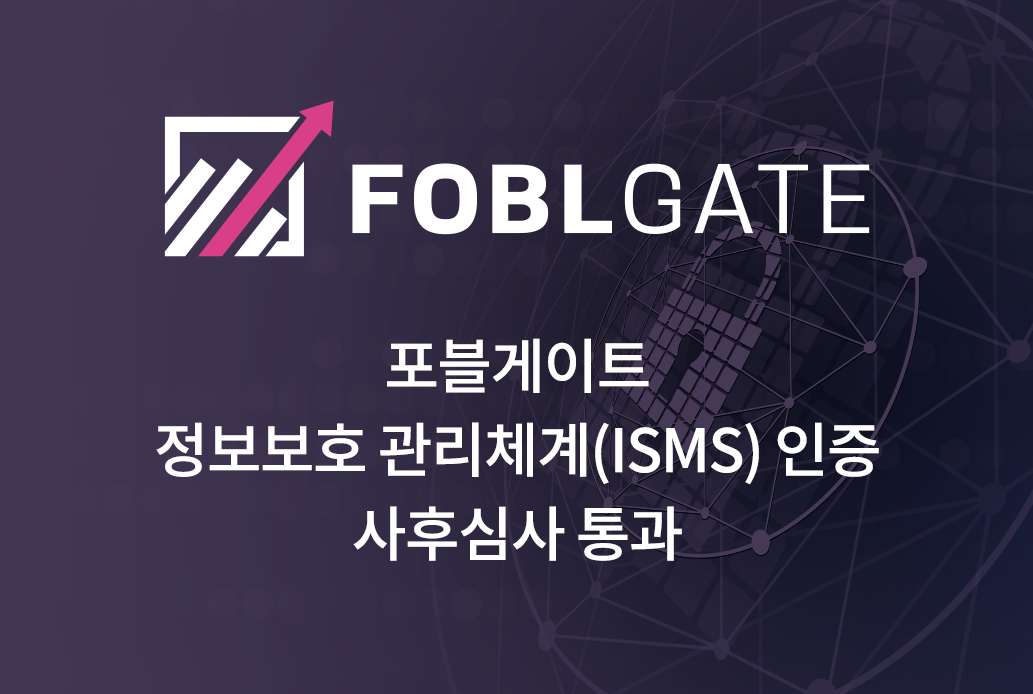 [테크월드뉴스=조명의 기자] 포블게이트가 한국인터넷진흥원(KISA)으로부터 정보보호관리체계(ISMS) 인증 사후 심사를 통과했다고 밝혔다.