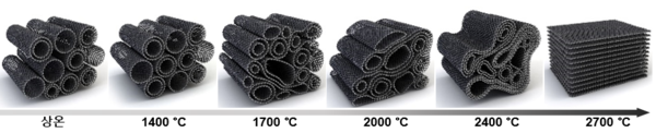 하지만 KIST-수원대-IMDEA 공동연구팀은 기존 탄소섬유 전구체인 고분자와 피치를 사용하지 않고 탄소나노튜브 단독 섬유를 제조했다. 연구진은 대량생산이 가능한 습식섬유 제조공정을 통해 고밀도·고배향 탄소나노섬유를 제조 후 고온에서 열처리하여 흑연구조를 포함한 다양한 형태의 특이 구조로 전환시켰다.