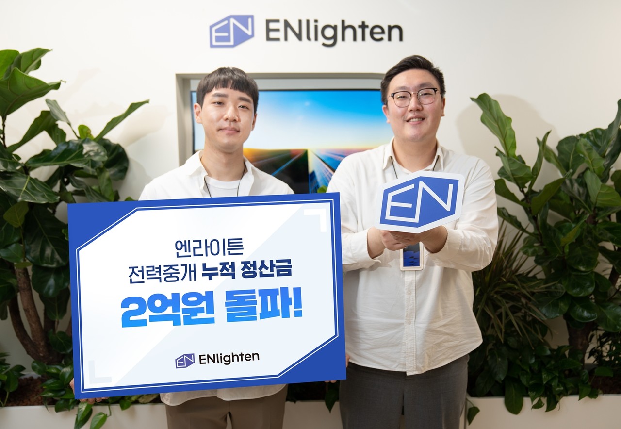 [테크월드뉴스=조명의 기자] 엔라이튼의 전력중개 정산금이 전력거래소 기준 현재까지 누적 2억 원을 돌파했다.