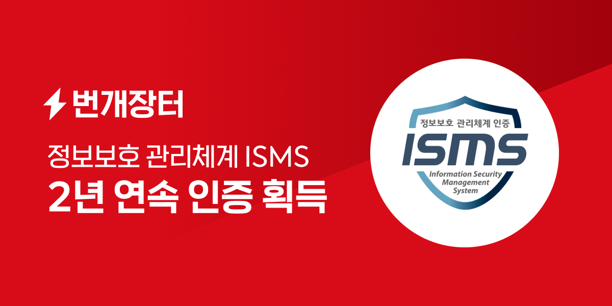 [테크월드뉴스=조명의 기자] 번개장터가 한국인터넷진흥원(KISA)에서 부여하는 정보보호관리체계(Information Security Management System, 이하 ISMS) 인증을 2년 연속 획득했다고 밝혔다.