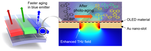 이와 더불어 OLED 물질 특성 변화를 보다 고감도로 검출하기 위해 테라헤르츠파의 공명 주파수 대역(1.0 THz)에 맞춰 폭 500 nm(나노미터), 길이 60 μm(마이크로미터)의 나노 슬롯 구조 메타물질 센싱 칩을 제작했다.