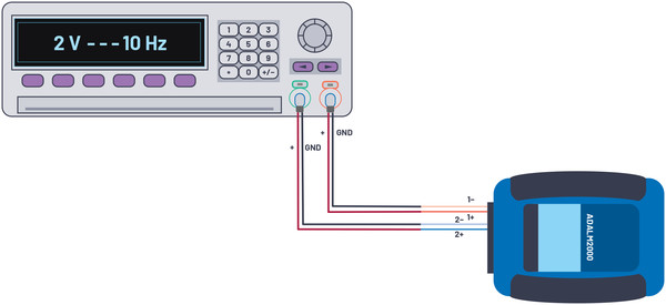 다른 신호 소스를 사용하더라도 같은 구성으로 연결할 수 있다. ADALM2000 디바이스를 USB 포트를 통해 컴퓨터(PC)로 연결한다.